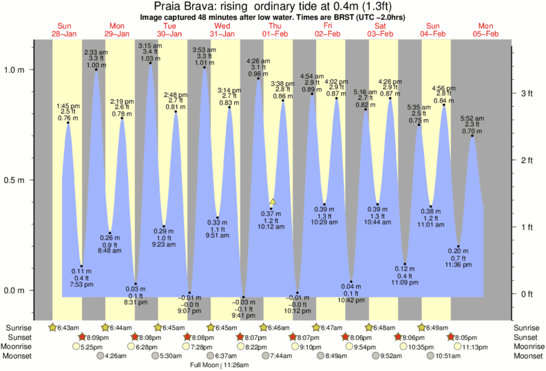 Forecast wind and swell just offshore from Praia Brava around the time the photo was taken