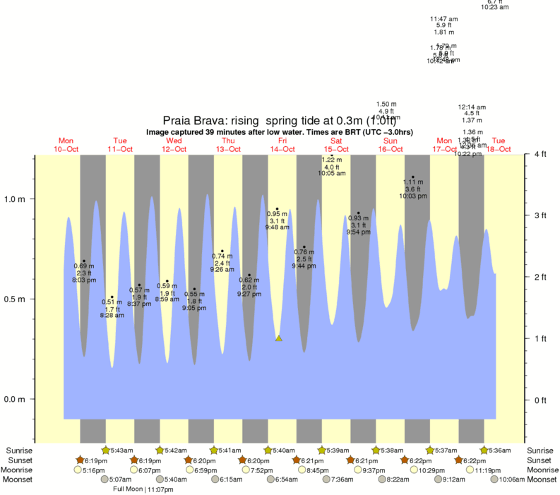 Forecast wind and swell just offshore from Praia Brava around the time the photo was taken
