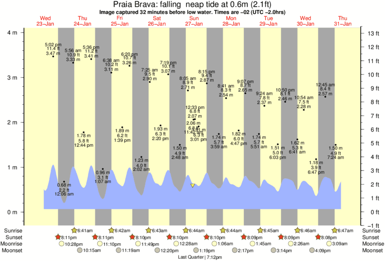 Forecast wind and swell just offshore from Praia Brava around the time the photo was taken