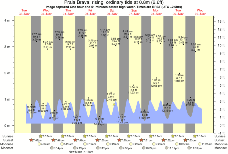 Forecast wind and swell just offshore from Praia Brava around the time the photo was taken