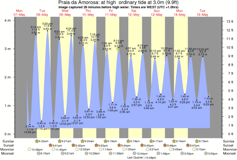 Forecast wind and swell just offshore from Praia da Amorosa around the time the photo was taken