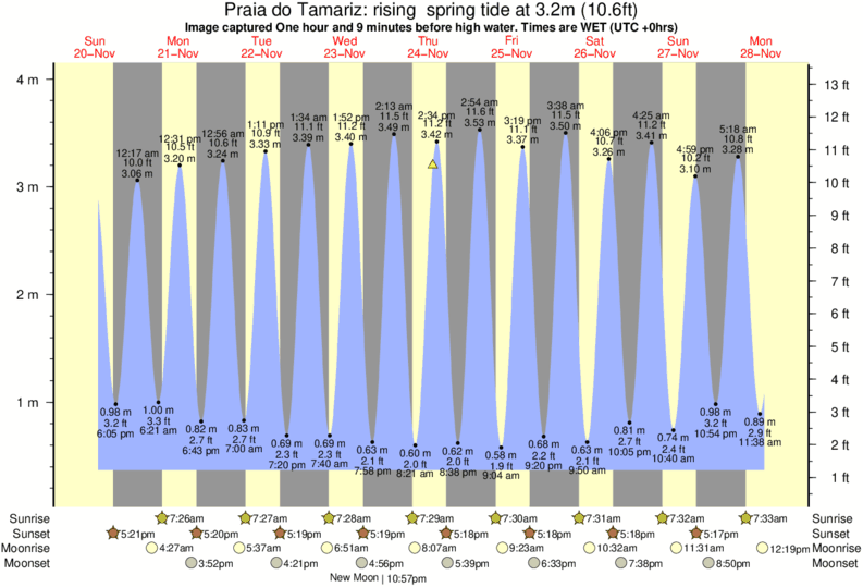 Forecast wind and swell just offshore from Praia do Tamariz around the time the photo was taken