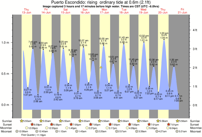 Forecast wind and swell just offshore from Puerto Escondido around the time the photo was taken