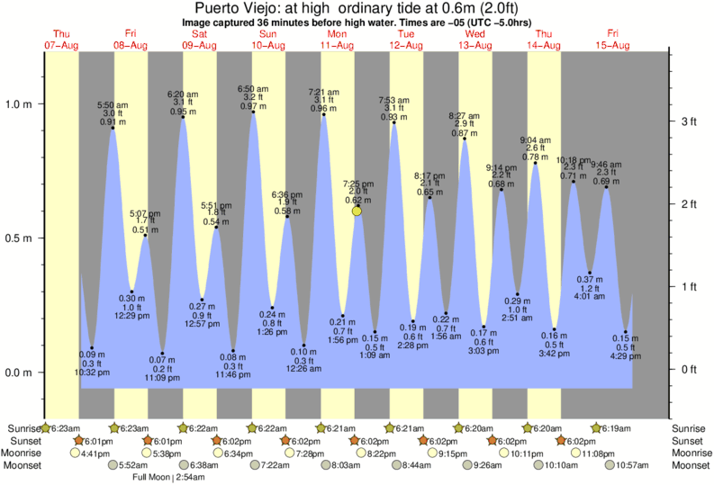 Forecast wind and swell just offshore from Puerto Viejo around the time the photo was taken