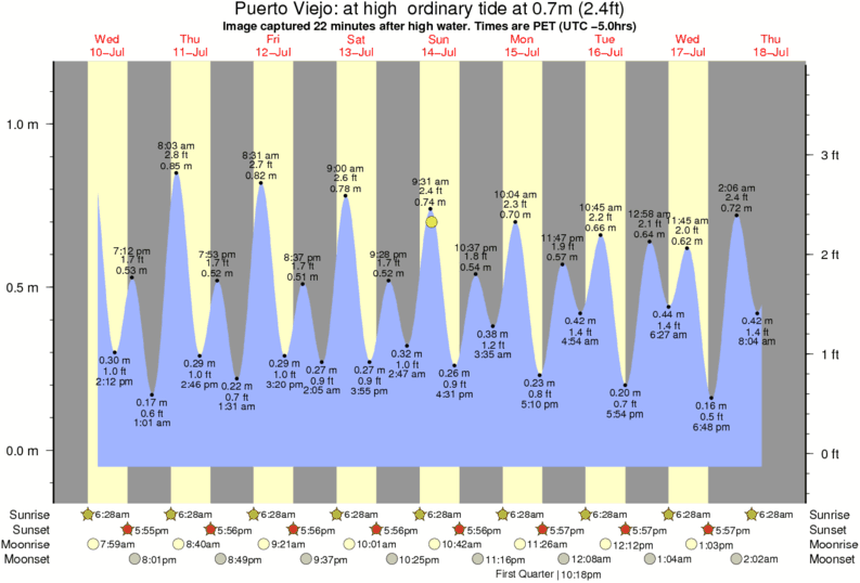 Forecast wind and swell just offshore from Puerto Viejo around the time the photo was taken
