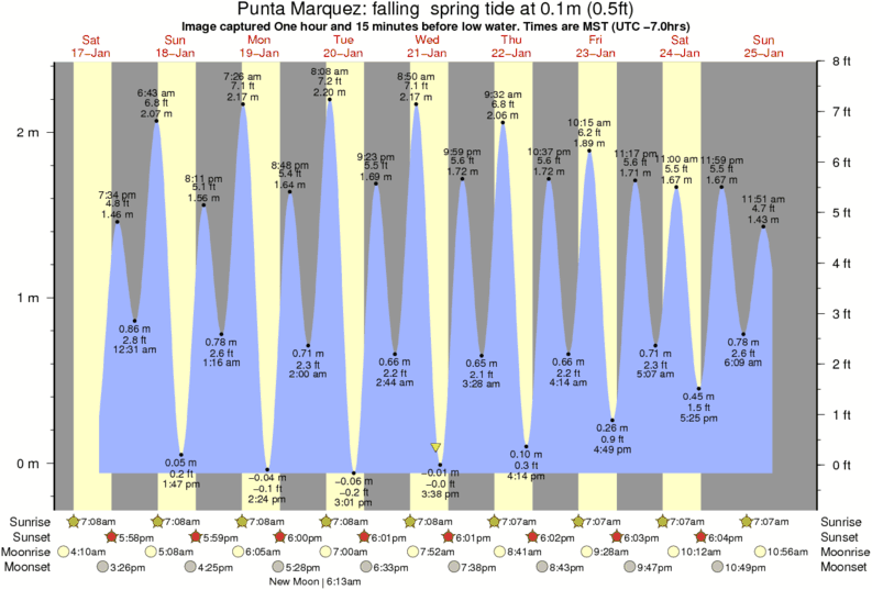 Image captured One hour and 15 minutes before low water (falling spring tide). Tide height was 0.1m (0.5 ft). Range 2.26m (7.4 ft). Toggle tide graph