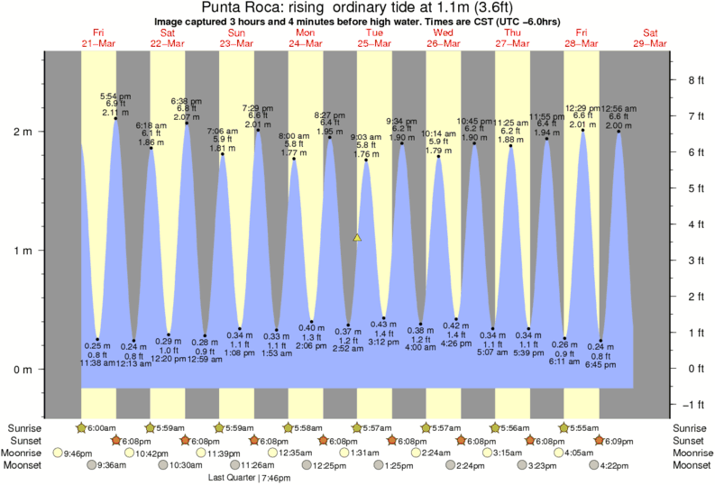 Forecast wind and swell just offshore from Punta Roca around the time the photo was taken