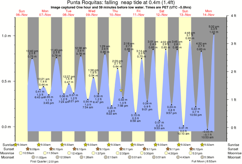 Image captured One hour and 59 minutes before low water (falling neap tide). Tide height was 0.4m (1.4 ft). Range 1.14m (3.7 ft). Toggle tide graph