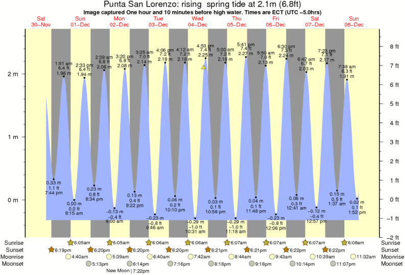 Forecast wind and swell just offshore from Punta San Lorenzo around the time the photo was taken