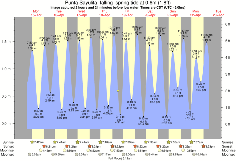 Image captured 2 hours and 21 minutes before low water (falling spring tide). Tide height was 0.6m (1.8 ft). Range 1.86m (6.1 ft). Toggle tide graph