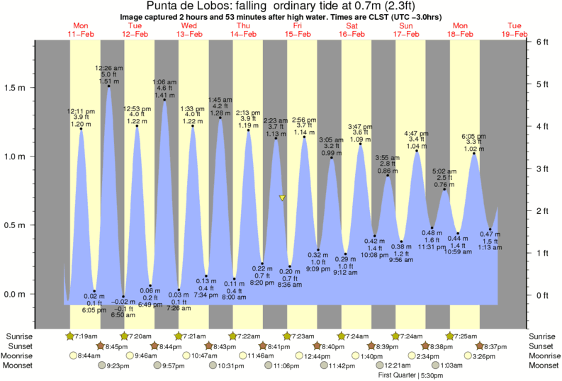 Image captured 2 hours and 53 minutes after high water (falling ordinary tide). Tide height was 0.7m (2.3 ft). Range 1.75m (5.7 ft). Toggle tide graph