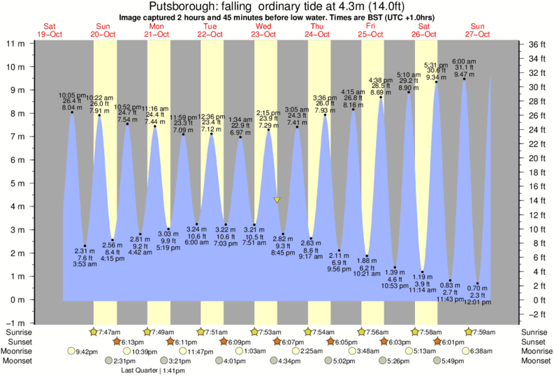 Image captured 2 hours and 45 minutes before low water (falling ordinary tide). Tide height was 4.3m (14.0 ft). Range 10.18m (33.4 ft). Toggle tide graph