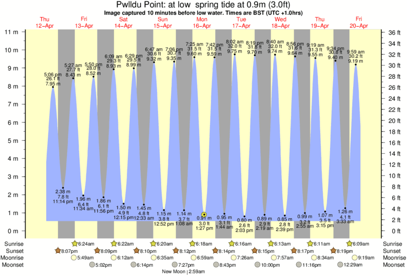 Image captured 10 minutes before low water (at low spring tide). Tide height was 0.9m (3.0 ft). Range 9.62m (31.6 ft). Toggle tide graph