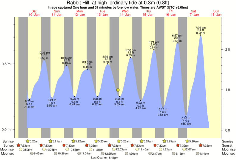 Image captured One hour and 32 minutes before low water (falling ordinary tide). Tide height was 0.3m (0.8 ft). Range 0.77m (2.5 ft). Toggle tide graph