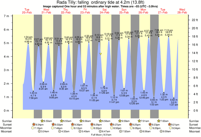 Image captured One hour and 53 minutes after high water (falling ordinary tide). Tide height was 4.2m (13.8 ft). Range 6.40m (21.0 ft). Toggle tide graph