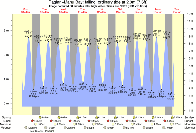 Forecast wind and swell just offshore from Raglan-Manu Bay around the time the photo was taken