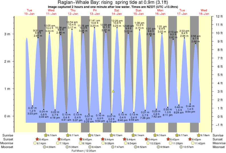 Forecast wind and swell just offshore from Raglan-Whale Bay around the time the photo was taken