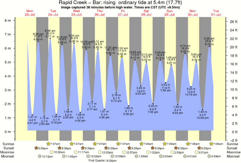 Image captured 36 minutes before high water (rising ordinary tide). Tide height was 5.4m (17.7 ft). Range 7.41m (24.3 ft). Toggle tide graph