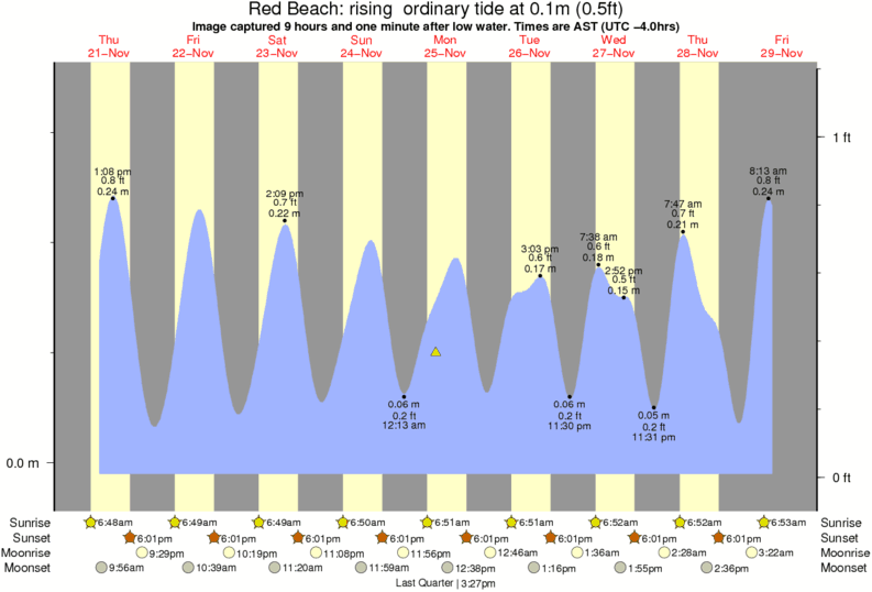 Image captured 9 hours and one minute after low water (rising ordinary tide). Tide height was 0.1m (0.5 ft). Range 0.34m (1.1 ft). Toggle tide graph