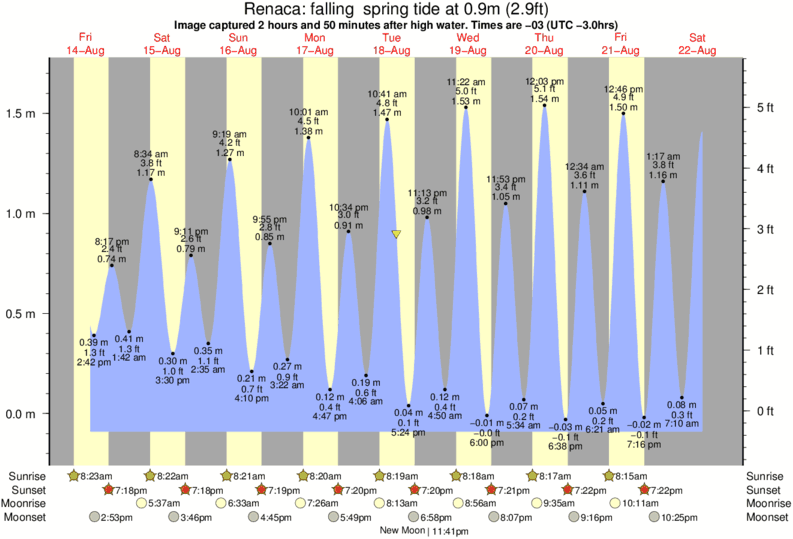 Image captured 2 hours and 50 minutes after high water (falling spring tide). Tide height was 0.9m (2.9 ft). Range 1.70m (5.6 ft). Toggle tide graph