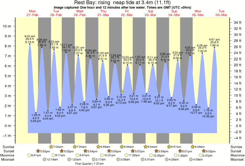 Forecast wind and swell just offshore from Rest Bay around the time the photo was taken