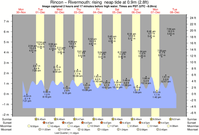 Forecast wind and swell just offshore from Rincon - Rivermouth around the time the photo was taken