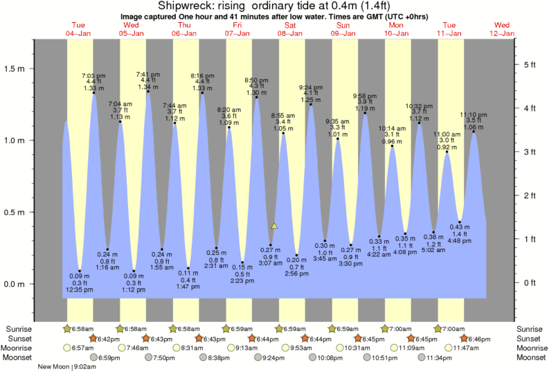 Image captured One hour and 41 minutes after low water (rising ordinary tide). Tide height was 0.4m (1.4 ft). Range 1.64m (5.4 ft). Toggle tide graph