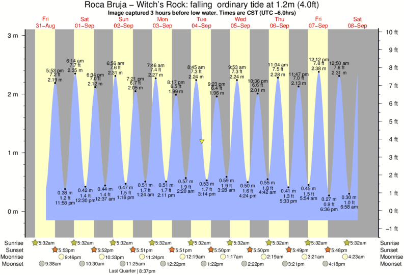 Forecast wind and swell just offshore from Roca Bruja - Witch's Rock around the time the photo was taken