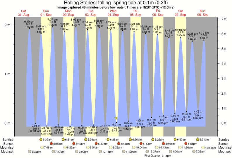 Image captured 48 minutes before low water (falling spring tide). Tide height was 0.1m (0.2 ft). Range 2.03m (6.7 ft). Toggle tide graph