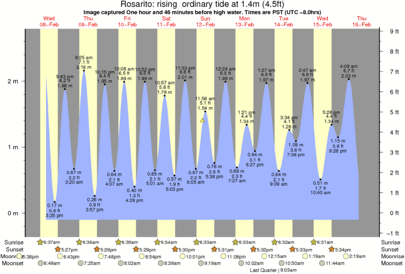 Forecast wind and swell just offshore from Rosarito around the time the photo was taken