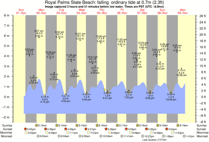 Forecast wind and swell just offshore from Royal Palms State Beach around the time the photo was taken