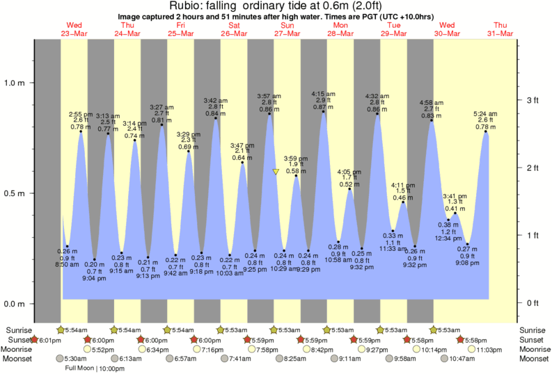 Image captured 2 hours and 51 minutes after high water (falling ordinary tide). Tide height was 0.6m (2.0 ft). Range 1.07m (3.5 ft). Toggle tide graph