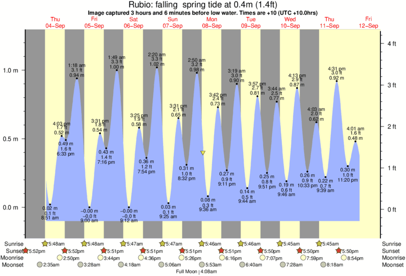 Image captured 3 hours and 6 minutes before low water (falling spring tide). Tide height was 0.4m (1.4 ft). Range 1.27m (4.2 ft). Toggle tide graph