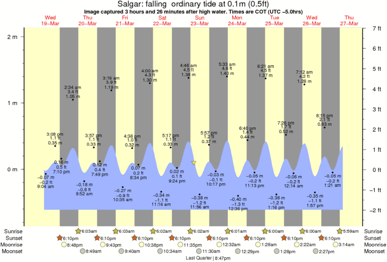 Image captured 3 hours and 26 minutes after high water (falling ordinary tide). Tide height was 0.1m (0.5 ft). Range 2.50m (8.2 ft). Toggle tide graph