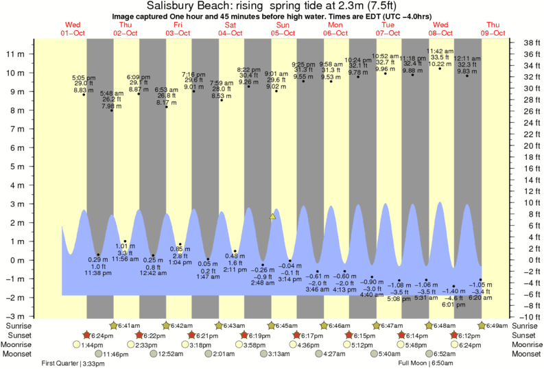Image captured One hour and 45 minutes before high water (rising spring tide). Tide height was 2.3m (7.5 ft). Range 12.45m (40.8 ft). Toggle tide graph