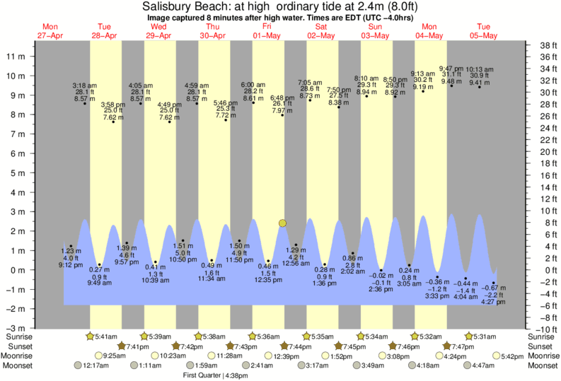 Image captured 8 minutes after high water (at high ordinary tide). Tide height was 2.4m (8.0 ft). Range 12.38m (40.6 ft). Toggle tide graph