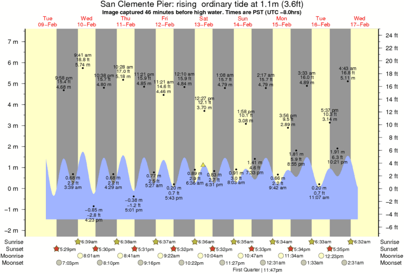 Forecast wind and swell just offshore from San Clemente Pier around the time the photo was taken