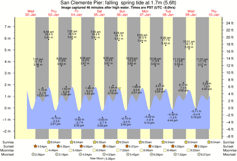 Forecast wind and swell just offshore from San Clemente Pier around the time the photo was taken