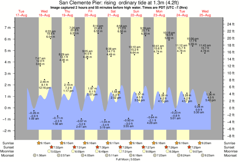 Forecast wind and swell just offshore from San Clemente Pier around the time the photo was taken
