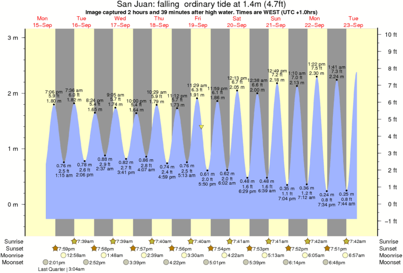 Image captured 2 hours and 39 minutes after high water (falling ordinary tide). Tide height was 1.4m (4.7 ft). Range 3.11m (10.2 ft). Toggle tide graph