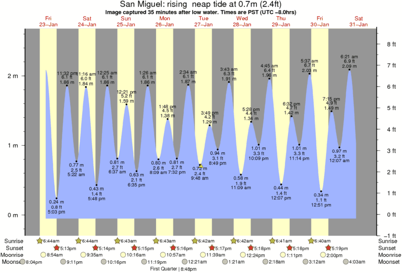 Forecast wind and swell just offshore from San Miguel around the time the photo was taken
