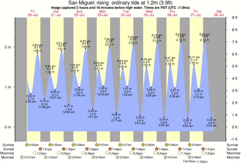 Forecast wind and swell just offshore from San Miguel around the time the photo was taken