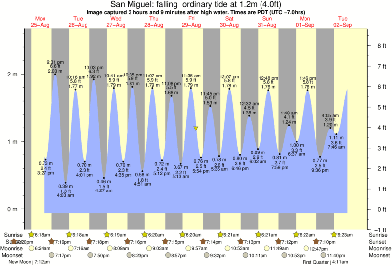 Forecast wind and swell just offshore from San Miguel around the time the photo was taken