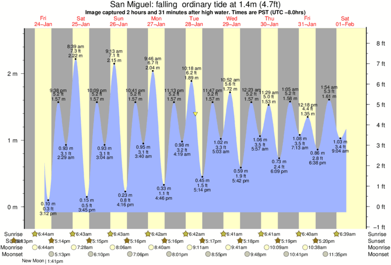 Forecast wind and swell just offshore from San Miguel around the time the photo was taken