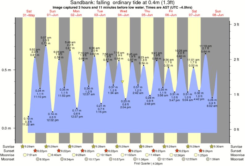 Image captured 3 hours and 11 minutes before low water (falling ordinary tide). Tide height was 0.4m (1.3 ft). Range 0.90m (3.0 ft). Toggle tide graph