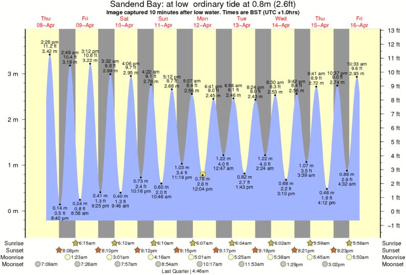 Image captured 10 minutes after low water (at low ordinary tide). Tide height was 0.8m (2.6 ft). Range 3.81m (12.5 ft). Toggle tide graph