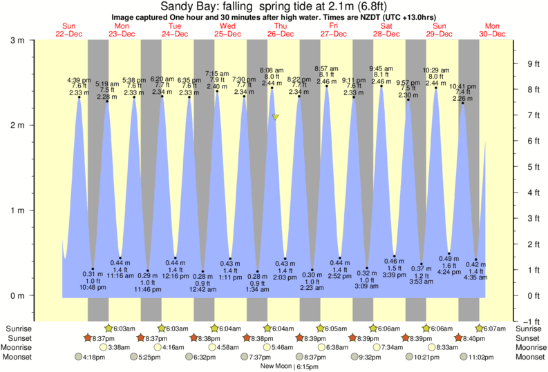 Image captured One hour and 30 minutes after high water (falling spring tide). Tide height was 2.1m (6.8 ft). Range 2.76m (9.1 ft). Toggle tide graph