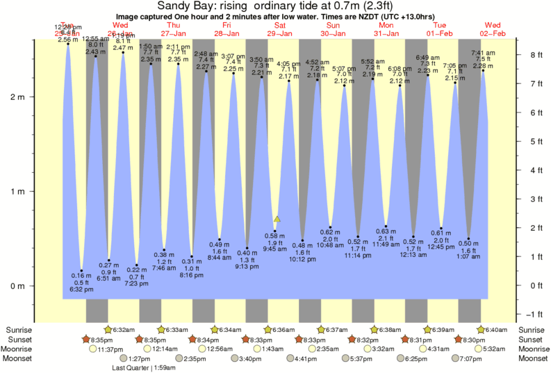 Image captured One hour and 2 minutes after low water (rising ordinary tide). Tide height was 0.7m (2.3 ft). Range 2.50m (8.2 ft). Toggle tide graph