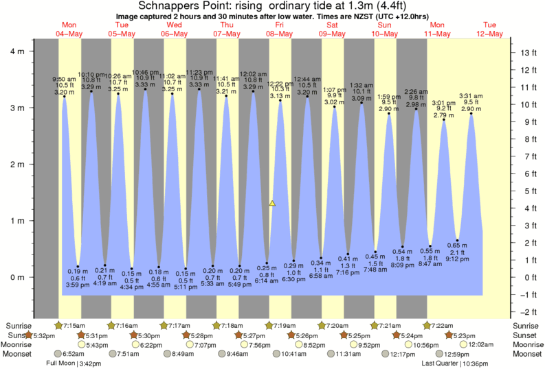Image captured 2 hours and 30 minutes after low water (rising ordinary tide). Tide height was 1.3m (4.4 ft). Range 4.13m (13.5 ft). Toggle tide graph