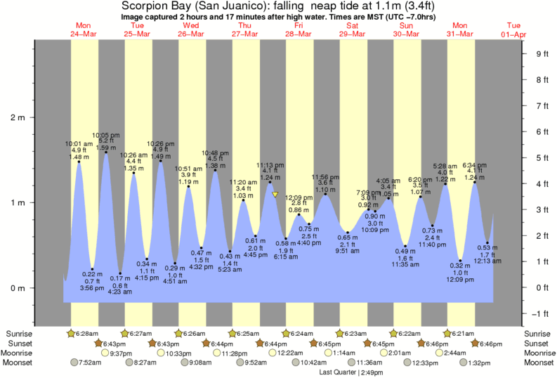 Image captured 2 hours and 17 minutes after high water (falling neap tide). Tide height was 1.1m (3.4 ft). Range 2.80m (9.2 ft). Toggle tide graph